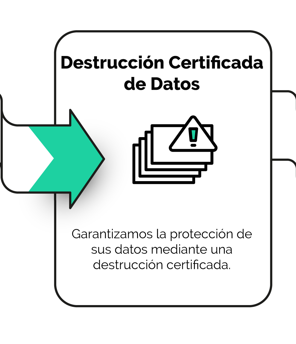 Manejamos tus datos con ética y seguridad. Garantizamos el formateo y destrucción de discos duros para proteger tu información electrónica de manera confiable.